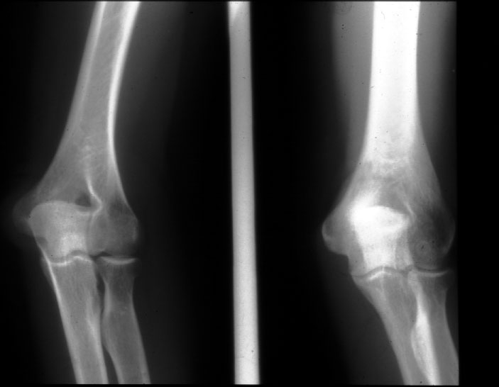 Normal Elbow (AP and oblique) -- Identify: humerus, radius, ulna, medial and leteral epicondyle, capitulum, radial head, radial tuberosity
